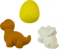 Set kalupa omogućuje stvaranje dinosaurovih oblika i zabavnih detalja koji će oživjeti svaki pješčani dvorac ili trag u pijesku.