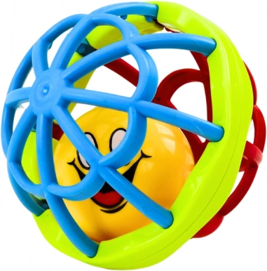 Lagana konstrukcija i ergonomski oblik olakšavaju hvatanje i rukovanje. Unutarnja zvečkica proizvodi nježan zvuk koji potiče znatiželju i interakciju, dok raznolike površine i boje podržavaju senzornu stimulaciju i finu motoriku.
