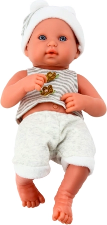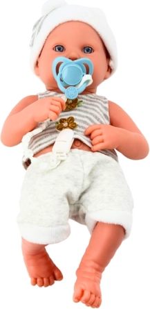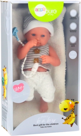 Ova realistična lutka u nježnom bijelo‑sivom outfitu oduševit će detaljno izrađenim crtama lica i ugodnim dodacima. Zahvaljujući pokretnim udovima djeca će uživati u interaktivnoj igri, presvlačenju i uspavljivanju pod mekom dekicom. U kompletu je i duda na vrpci koja se neće izgubiti.