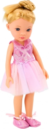 Lutka je odjevena u elegantnu ružičastu baletnu haljinu koja se presijava i privlači pozornost. Na nogama ima klasične balerinke vezane oko gležnja, koje joj daju autentičan izgled prave balerine. Lutka ima dugu plavu kosu skupljenu u visoku punđu, koja naglašava njezin baletni stil. Ima nježnu šminku i šarenu ogrlicu, što joj daje šarm i eleganciju. Uz lutku dolazi i stilska torbica, idealna za njezine male dodatke. Funkcionalni kofer koji lutka može ponijeti na svoje baletne putove. Ukosnice koje se mogu koristiti za uređivanje frizure lutke. Mali prsten koji lutki daje dašak elegancije. Zrcalo, četka i ručno zrcalo zahvaljujući kojima lutka može provjeriti svoj izgled prije baletnog nastupa.