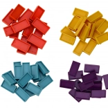 Set sadrži domino kocke u četiri boje: crvenoj, žutoj, tirkiznoj i ljubičastoj, koje potiču razvoj prepoznavanja boja.