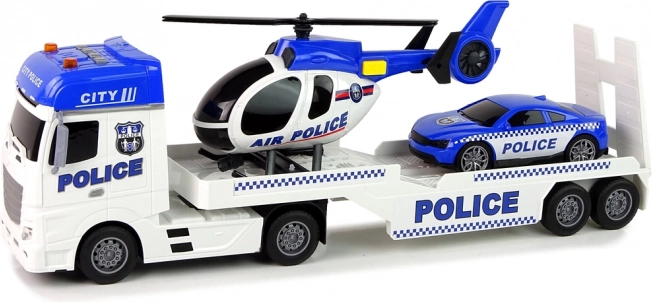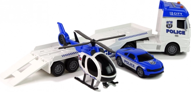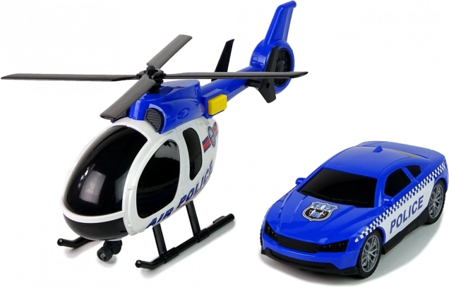 Ovaj policijski set predstavlja kompletan paket za sve male heroje. Kombinacija efekata sirena i svjetala donosi realnu atmosferu policijskih intervencija. Rotirajuće lopatice helikoptera i funkcionalno teretno vozilo dodaju igri akcijski element.