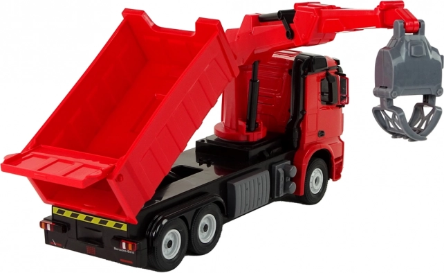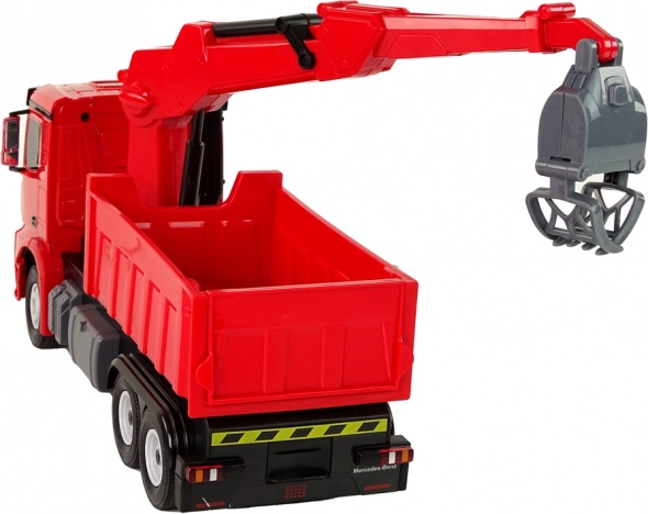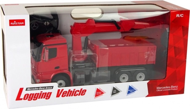Ovaj detaljno izrađen model kamiona MERCEDES s funkcionalnom dizalicom i hvataljkom potiče kreativnu igru, razvoj motorike i mašte. Upravljanje se odvija pomoću daljinskog upravljača – vožnja naprijed/nazad i skretanje u stranu, dok svjetla daju vožnji realističnu atmosferu.