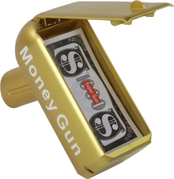 Pištolj koji izbacuje novčanice jedinstven je dodatak; kreativni lanser privlači pažnju svojim neobičnim dizajnom. Lanser novčanica u obliku pištolja izrađen je od visokokvalitetnih materijala i predstavlja zabavan rekvizit.