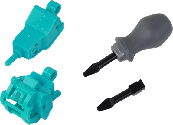 Set sadrži odvijač i vijke, pomoću kojih se bager može lako rastaviti i ponovno sastaviti. Djeca tako razvijaju finu motoriku i tehničke vještine.