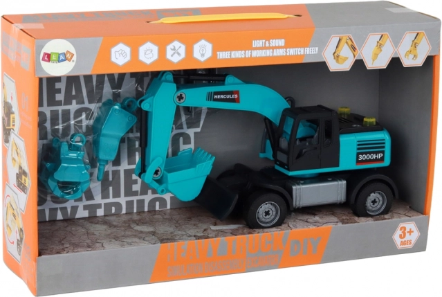 Tri nastavka – žlica, svrdlo i kliješta – omogućuju prilagodbu bagera različitim zadacima. Jednostavna zamjena potiče kreativnu i poticajnu igru.