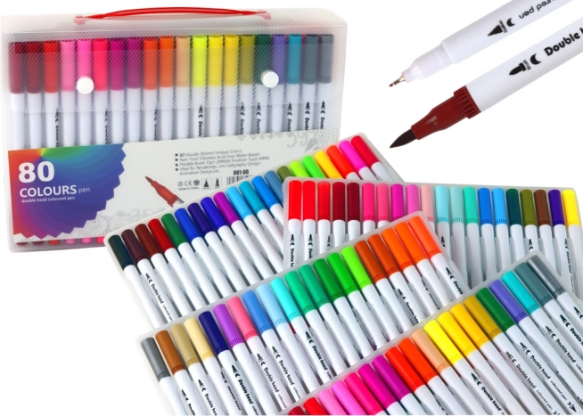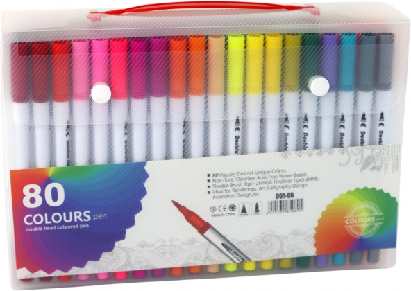 Otkrijte neograničene umjetničke mogućnosti s našim obostranim flomasterima. Set sadrži 80 raznobojnih obostranih flomastera koji omogućuju izražavanje vaše kreativnosti u najšarenijim nijansama. Bez obzira jeste li profesionalni umjetnik ili početnik entuzijast, naši flomasteri ispunit će vaša očekivanja s obzirom na kvalitetu i raznolikost.