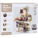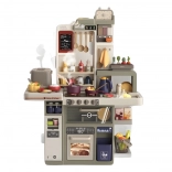 Napa s gumbom on/off i glazbenom funkcijom reproducira melodije i pali svjetla, što igri daje dodatnu interaktivnost. Slavina sa zatvorenim krugom ispušta vodu pomoću pumpice – bez nereda i potpuno pod kontrolom. Set sadrži 74 praktična dodatka (voće, povrće, lonci, šalice, tanjuri, pribor za jelo, keksi, čokoladice, vrč, pločica za kredu, kuhalo za jaja, kečap, senf, papar, mlijeko itd.), ukupno 88 elemenata.