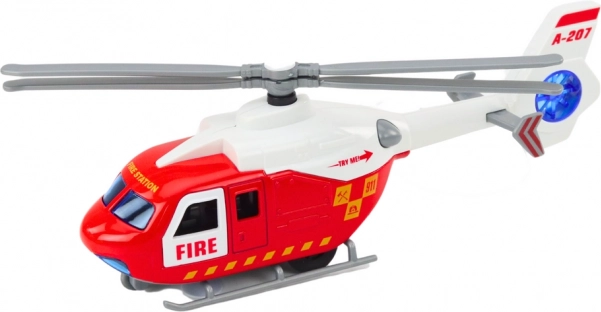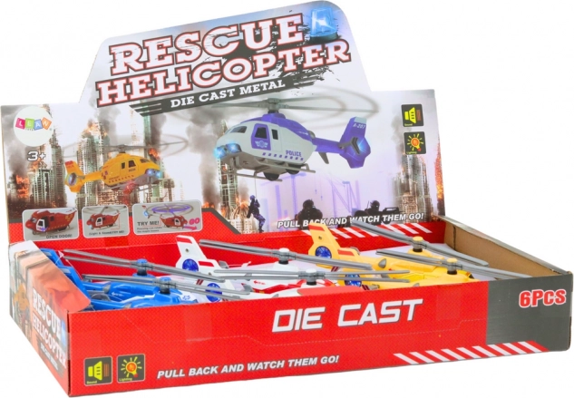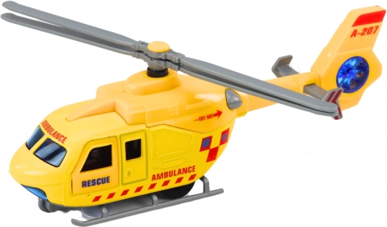Ovaj detaljno izrađen metalni helikopter oduševit će sve male ljubitelje službi spašavanja. Zahvaljujući svjetlosnim i zvučnim efektima vjerno oponaša akcije policije, vatrogasaca i hitne pomoći. Otvarajuća vrata omogućuju umetanje figurica i dodataka te proširuju scenarije igre.