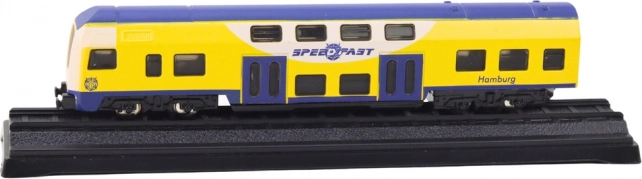 Otkrijte precizno izrađen model vlaka velike brzine s natpisima „Hamburg“ i „Speedfast“, koji impresionira vjernim omjerom i metalnim tijelom. Realistične proporcije u mjerilu 1:48, čiste linije i fini detalji, poput prozora i vrata, naglašavaju kolekcionarsku vrijednost.