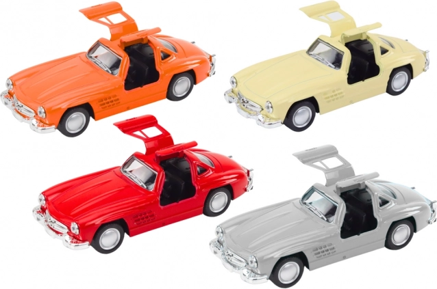 Klasični auto u mjerilu 1:32 oduševit će sve ljubitelje retro automobila. Metalna izrada, autentični detalji, vrata koja se otvaraju prema gore i inercijski pogon za zabavnu vožnju. Idealno za djecu od 3 godine i odrasle kolekcionare, s CE certifikatom i sukladnošću s EN71.