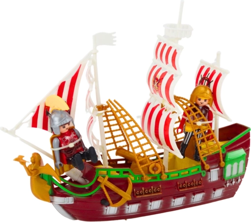 Zahvaljujući ugrađenim kotačićima brod se glatko kreće po podu i stolu, dok katapult, palme i figure rimskih vojnika omogućuju stvaranje dinamičnih bitaka i povijesnih scena.
