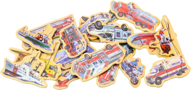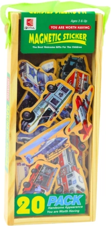 Set sadrži 20 različitih drvenih magneta, svaki s jedinstvenim dizajnom, gdje nalazimo vozila, brodove i avione, koji pomažu djeci razvijati njihovu svijest o različitim prijevoznim sredstvima.