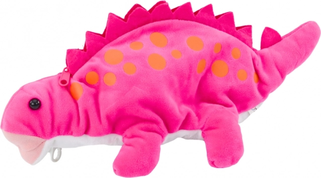 Ovaj plišani dinosaurus u ružičastoj boji razveselit će djecu mekim materijalom, a ujedno iznenaditi pametnom funkcijom spremišnog prostora. Na leđima ima kvalitetan zip, pa može poslužiti kao pernica, džepićić za sitnice ili mini torbica za tajne dragocjenosti.