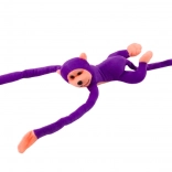 Preslatki plišani majmun u intenzivnoj ljubičastoj boji razveselit će i djecu i odrasle. Ima ekstra duge udove s čičak-zatvaračem, pa ga lako možete objesiti na ruku, krevetić ili stolicu. Nakon pritiska na trbuščić ispušta zvuk, što potiče igru i maštu. Mekani materijal mami na maženje i uljepšava svaki dječji prostor.