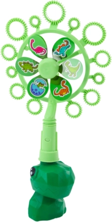 Jednostavno ulijevanje otopine u zdjelicu i praktično umakanje vjetrenjače. Zeleni spremnik u obliku dinosaura privući će djecu na prvi pogled.