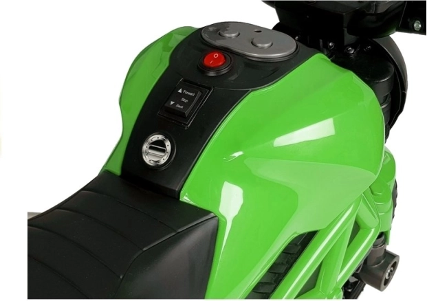 Upravljanje je jednostavno: na spremniku su glavni prekidač i prekidač smjera vožnje (naprijed, natrag, neutralno). LED prednje svjetlo može svijetliti u nekoliko boja, što vožnji daje atraktivan efekt. Motor je prikladan za djecu od 3 godine, bez daljinskog upravljača za roditelje, te ispunjava europske norme s CE certifikatom.