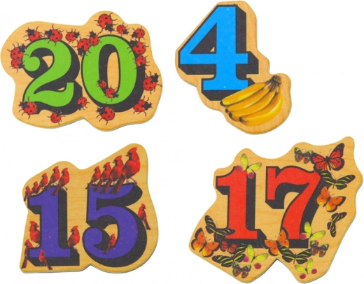 Magnetski drveni brojevi izrađeni su od visokokvalitetnog drva, što osigurava njihovu izdržljivost i sigurnost tijekom igre. Djeca mogu lako pričvrstiti ove magnete na metalne površine, poput hladnjaka ili magnetske ploče, što pridonosi razvoju finih motoričkih vještina, koordinacije ruka-oko i proširenju rječnika i matematičkih vještina.