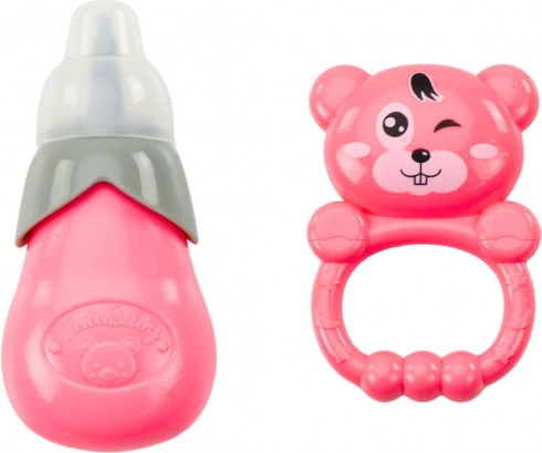 Dio seta je bočica za dojenčad koja, kada se napuni vodom, omogućuje "uriniranje" lutke. Zvekir potiče motorički razvoj i koordinaciju.