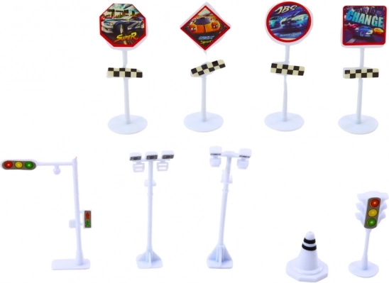 U pakiranju ćete pronaći također set prometnih znakova i podlogu, koja simulira prometno okruženje i obogaćuje igru.