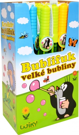 Boca za mjehuriće u štapiću s motivom Krtka, zapremnina 120 ml. Tri boje: žuta, narančasta, zelena. Sjajna zabava za djecu na igralištu i proslavama.