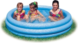 Plavi nafukni bazen za djecu marke Intex je savršen izbor za ljetnu igru u dvorištu. Zahvaljujući laganoj instalaciji i niskoj težini bazen se brzo pripremi za uporabu. Dovoljno ga je postaviti na stabilnu površinu, napuhati i napuniti vodom. Jaki troprstenasti zidovi pružaju dovoljnu stabilnost i za najmlađe korisnike.