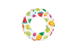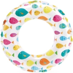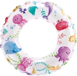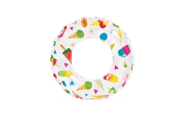 Ovaj dječji napuhujući prsten savršen je izbor za prve vodene radosti. Lagana konstrukcija i izdržljiv PVC materijal osiguravaju stabilnost i udobnost pri plivanju i igri u vodi. Vesele ilustracije ribica, morskih stvorenja, sladoleda i voća razveselit će svako dijete i uljepšati ljetne dane.