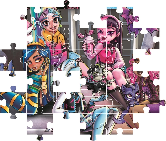 Uživajte u sjajnoj zabavi s puzzlama za djecu i ljubitelje serije MONSTER HIGH. Pakiranje sadrži 180 dijelova kvalitetno izrađenih puzzli s konačnim formatom oko 48,5 × 33,5 cm – idealno za obiteljsko slaganje te razvoj strpljenja i fine motorike.