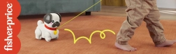 Preslatki povlačni psić mopsić iz linije FP Pets brenda Fisher-Price idealan je „prvi ljubimac“ za najmlađe. Kada se povlači za uzicu, miče uškama i šapicama te ispušta veselo lajanje koje potiče djecu na kretanje i razvoj grube motorike. Bez baterija – zabava u svakom trenutku. Boje i detalji mogu se razlikovati.
