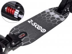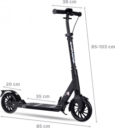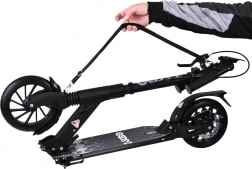 Ovaj robusni gradski romobil ističe se kombinacijom udobnosti i sigurnosti. Ručna disk-kočnica u kombinaciji s tarčnom kočnicom u blatobranu i odraznikom povećava kontrolu i vidljivost. Ovjes ublažava neravnine te zajedno s velikim kotačima osigurava glatku vožnju po asfaltu i manje ravnim nogostupima.