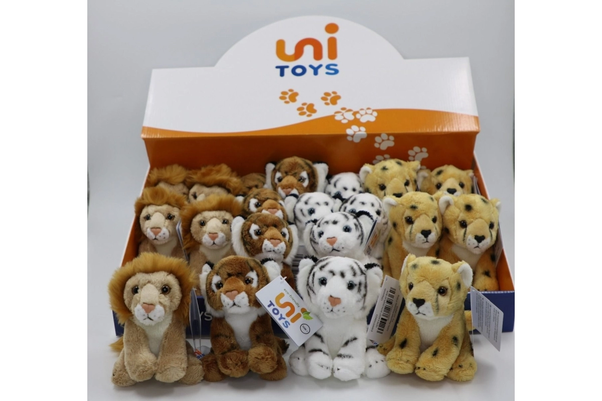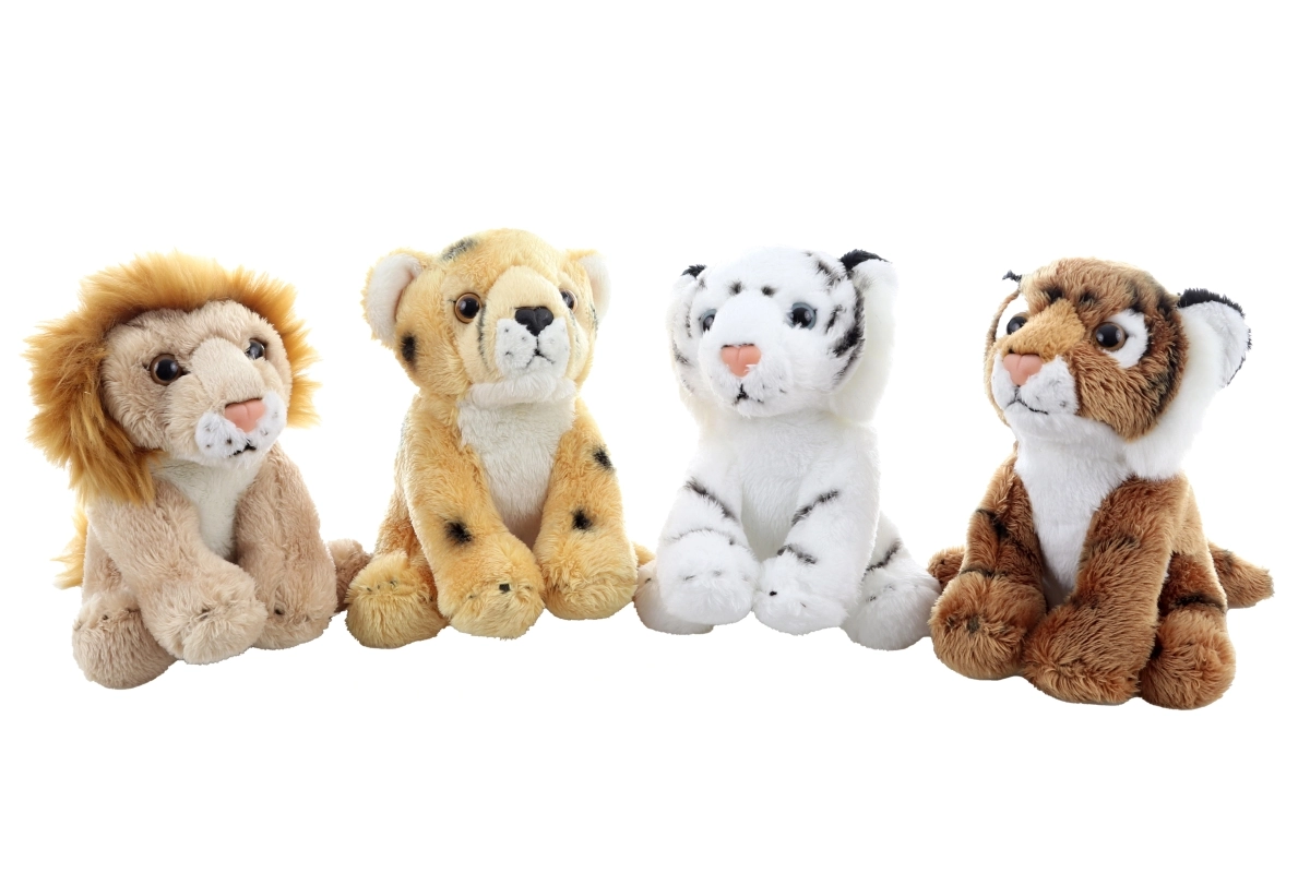 Slatka plišana divlja životinja veličine 15 cm razveselit će male i velike ljubitelje životinja. Izrađena od eco friendly materijala, mekana je, sigurna od 10 mjeseci i idealna za maženje i igru. Dostupne su 4 vrste (lav, gepard, tigar, bijeli tigar) – isporuka ovisi o dostupnosti na skladištu.