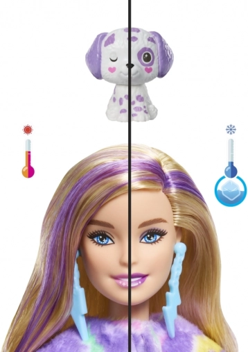 Otvaranje nikada nije bilo ovako zabavno! U šarenoj tubi čeka BARBIE s dugom duginom kosom skrivena u mekom životinjskom kostimu – od zeke preko zebre do pingvina ili dalmatinera. Nakon skidanja kostima otkrit ćete zglobnu lutku spremnu za stiliziranje i priče pune mašte. Okretanjem kostima nastaje flis jaknica, a iz glave kostima lako se napravi ležaj za mini životinjicu.