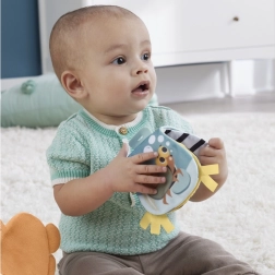 Preslatka vidra 2-u-1 marke Fisher-Price mekani je jastučić koji podupire igru na trbuščiću, a ujedno i veseli njihajući prijatelj za sjedenje. U kompletu je i tekstilna knjižica u kontrastnim bojama sa sigurnim zrcalcem i šuškavim elementima koji stimuliraju osjetila, potiču vizualno istraživanje i razvoj fine motorike. Igračka je lagana, kompaktna i idealna za putovanja.