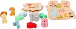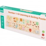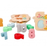 Ovaj kvalitetni drveni edukativni set podržava rani razvoj matematičkih vještina. Djeca pridružuju brojeve 1–10 odgovarajućim dijelovima sa životinjama, čime prirodno usvajaju brojanje i razvrstavanje. Izdržljiva drvena izvedba i izražajne boje potiču na ponovnu igru.