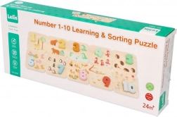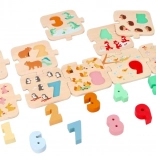 Otkrijte zabavan put do brojanja s ovim drvenim puzzlama 1–10. Spajaju šarene brojke i ilustracije životinja za razigrano učenje, razvijaju finu motoriku, logiku i prepoznavanje brojeva. Idealno za djecu od 24 mjeseca.