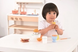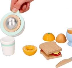 Ovaj pažljivo izrađen drveni set za doručak idealan je za prve kuharske avanture. Djeca mogu pripremiti vlastiti doručak – od rezanja peciva do cijeđenja svježeg soka. Realistični detalji i ugodne pastelne boje potiču igru i razvijaju maštu.