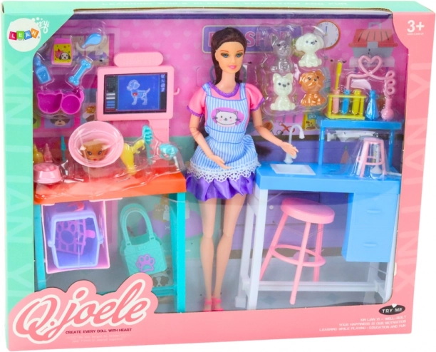 Set sadrži šarenu veterinarsku sobu s umivaonikom, stoličicom i računalom, što potiče dijete na kreativnost i razvoj empatije. Ne samo da se uz ovaj set djeca igraju liječenja životinjica, nego također uče odgovornosti i razvijaju motoričke vještine.