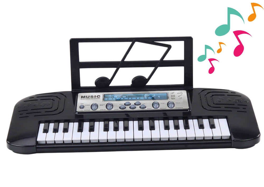 Električni klavir za djecu u elegantnoj crnoj boji s 37 tipki, mikrofonom i stalkom za note donosi sate zabave i učenja. Podržava glazbeni razvoj, kreativnost i samopouzdanje pri nastupu zahvaljujući funkcijama koje oponašaju klavir, gitaru, glazbenu kutiju i violinu.