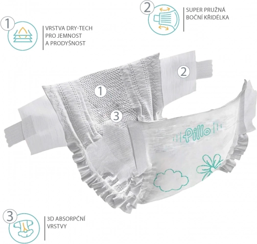 Cilj naših pelena je neprekidna udobnost vašeg djeteta i održavanje suhoće do 12 sati, što je idealno za cjelodnevnu i noćnu zaštitu. Super elastična bočna krilca pružaju ne samo fleksibilnost za sve dječje avanture, već i savršeno prilagođavanje pelene svakom pokretu. Pelene su ultra nježne i prozračne zahvaljujući premium materijalima, što osigurava cjelodnevnu udobnost vašeg djeteta.