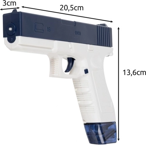 Uživajte u ljetnim okršajima s vodenim pištoljem koji automatski puca bez pumpanja. Zahvaljujući punjivoj bateriji preko USB-a radi do 50 minuta, ima domet oko 10 m i nudi dva spremnika – bubanj od 400 ml i kompaktni od 40 ml. Izdržljiv ABS, ergonomski hvat i brtvljeni spremnici bez curenja osiguravaju udobnu i sigurnu zabavu uz bazen, na plaži i u vrtu.