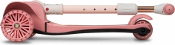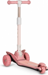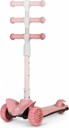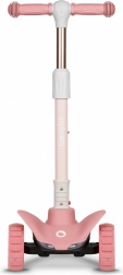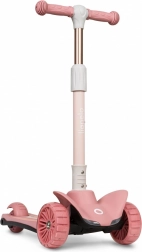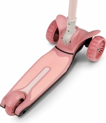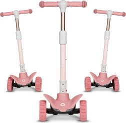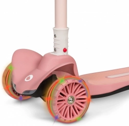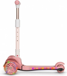 LIONELO Timmy Pink Rose lagan je i siguran dječji romobil osmišljen za udobne prve vožnje. Dva velika prednja kotača i jedan stražnji osiguravaju izvrsnu stabilnost, dok lean-to-steer (zavijanje naginjanjem) potiče razvoj ravnoteže i motorike. LED svjetla u kotačima aktiviraju se kretanjem, a LED pozadinsko osvjetljenje platforme povećava vidljivost i zabavu.