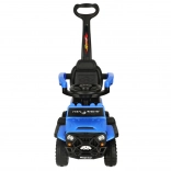 Plava dječja guralica u stilu terenskog vozila spaja zabavu i sigurnost. Zahvaljujući upravljačkoj ručki, zaštitnim ogradicama i naslonu idealna je za zajedničke šetnje, dok svjetlosni i zvučni efekti potiču maštu i veselje u vožnji.