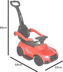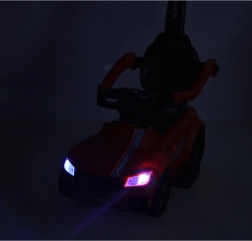Tri, dva, jedan… start! Ova crvena guralica za djecu od 12 mjeseci idealna je za prve samostalne vožnje i šetnje s roditeljima. Integrirana svjetla i zvučni efekti (napajanje 3× AA) dodaju vožnji poseban šarm, dok udobno sjedalo s naslonom i bočnim ogradicama pruža sigurnost malim vozačima.