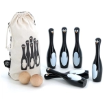 Cijeli set je dostupan u praktičnoj pamučnoj vrećici, što olakšava ne samo njegovo prenošenje već i skladištenje. Igračku je lako ponijeti sa sobom na izlete ili na odmor, kako bi djeca uvijek imala svoju omiljenu zabavu pri ruci. Pokažite svoju spretnost i oborite što više kuglana jednim bacanjem!