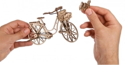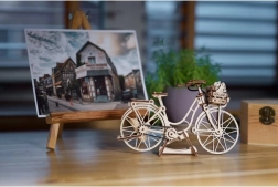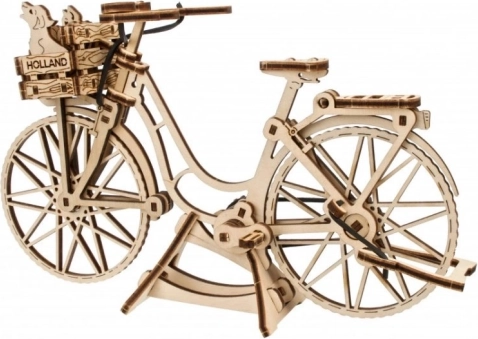 Bicikl Holland tvrtke Ugears vjerno prikazuje ikonični gradski bicikl s ulica Amsterdama – s elegantnim okvirom, prednjom košarom i stražnjim nosačem. Dijelovi su laserski precizno unaprijed izrezani i čisto se uklapaju, pa ćete model udobno sastaviti bez ljepila za otprilike 1,5 sat. Nakon dovršetka oduševit će vas realističnim funkcijama: okretni upravljač, pomične pedale s gumenim lancem i rotirajući kotači.
