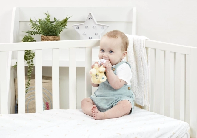 Mekani pliš, prirodna paleta boja i kompaktna veličina čine zveckalo idealnom prvom igračkom.