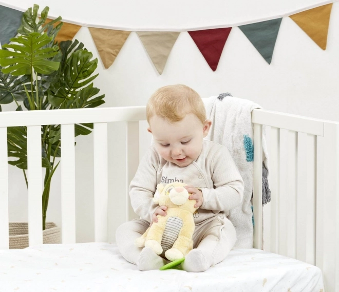 Upoznajte malog lavića Simbu – mekanog prijatelja za svaki dan. Plišana igračka spaja umirujuću mekoću s pametnim detaljima za senzorno istraživanje: teksturirani trbuščić, nježno obrubljene uši i listno grizalo za olakšanje pri nicanju zubića.