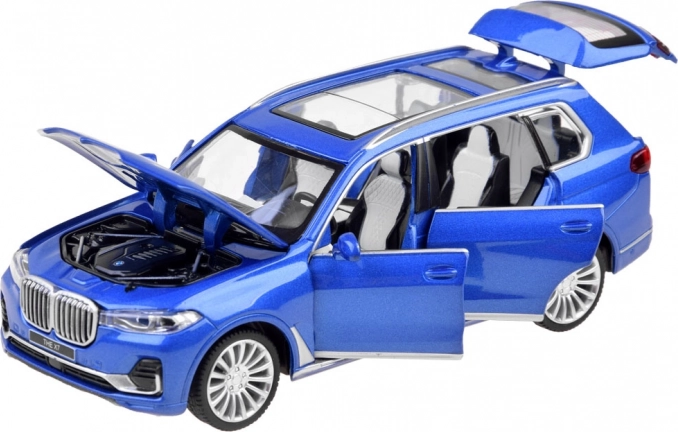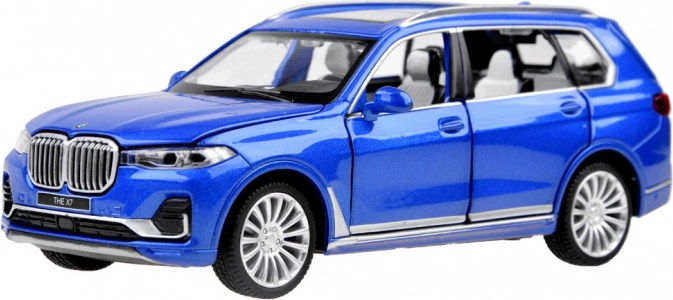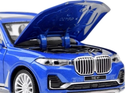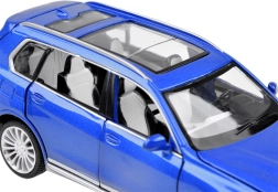 Realističan metalni model SUV-a BMW X7 u mjerilu 1:32 razveselit će svakog malog vozača. Nudi otvarajuća vrata, poklopac motora i prtljažnik, svjetlosne i zvučne efekte, gumene gume te povratni pogon (pull-back) za brzu vožnju. Kvalitetna metalna karoserija i pažljiva izrada jamče izdržljivost i sjajan izgled.