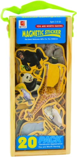 Ovaj set od 20 drvenih magneta donosi djeci šareni svijet faune izravno u dom. Svaki komad ima realističan otisak koji vjerno prikazuje značajke pojedinih vrsta, čime potiče prirodno učenje kroz igru. Magneti se lako prihvaćaju za hladnjak, magnetsku ploču ili druge metalne površine.