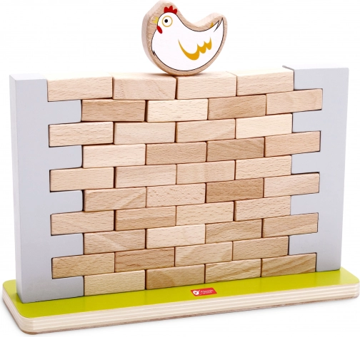 Zabavna i edukativna dječja balansirajuća igra brenda CLASSIC WORLD. Složite od drvenih “cigli” stabilan zid, na vrh postavite kokoš i zatim postupno izvlačite ciglice tako da se konstrukcija ne sruši. Igra razvija finu motoriku, koordinaciju ruka–oko, logičko razmišljanje i strategiju te je izvrsna za djecu od 3 godine i cijelu obitelj.